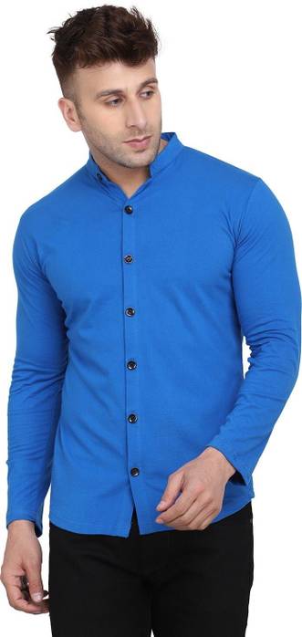 GEUM Men Regular Fit Solid Mandarin Collar Casual Shirt