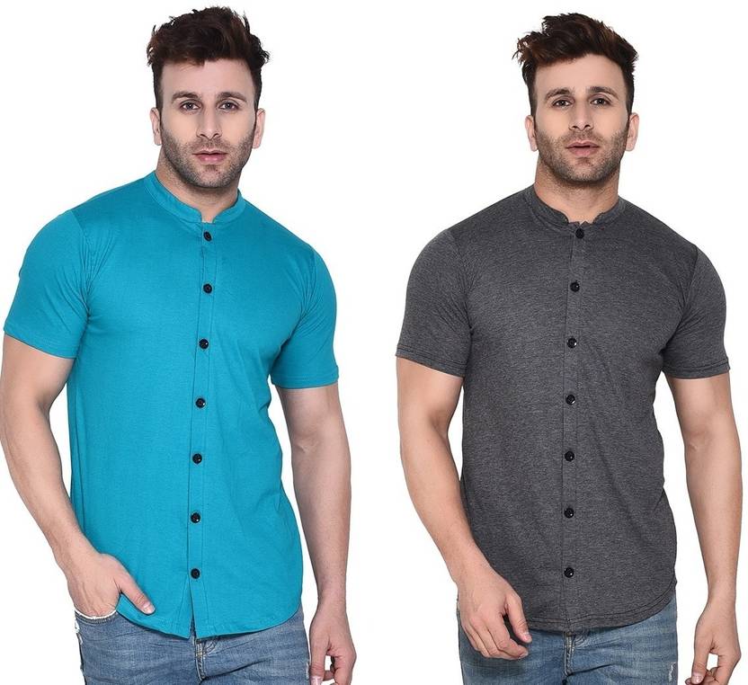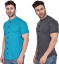 Men Regular Fit Solid Mandarin Collar Formal Shirt (Pack of 2)