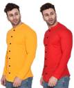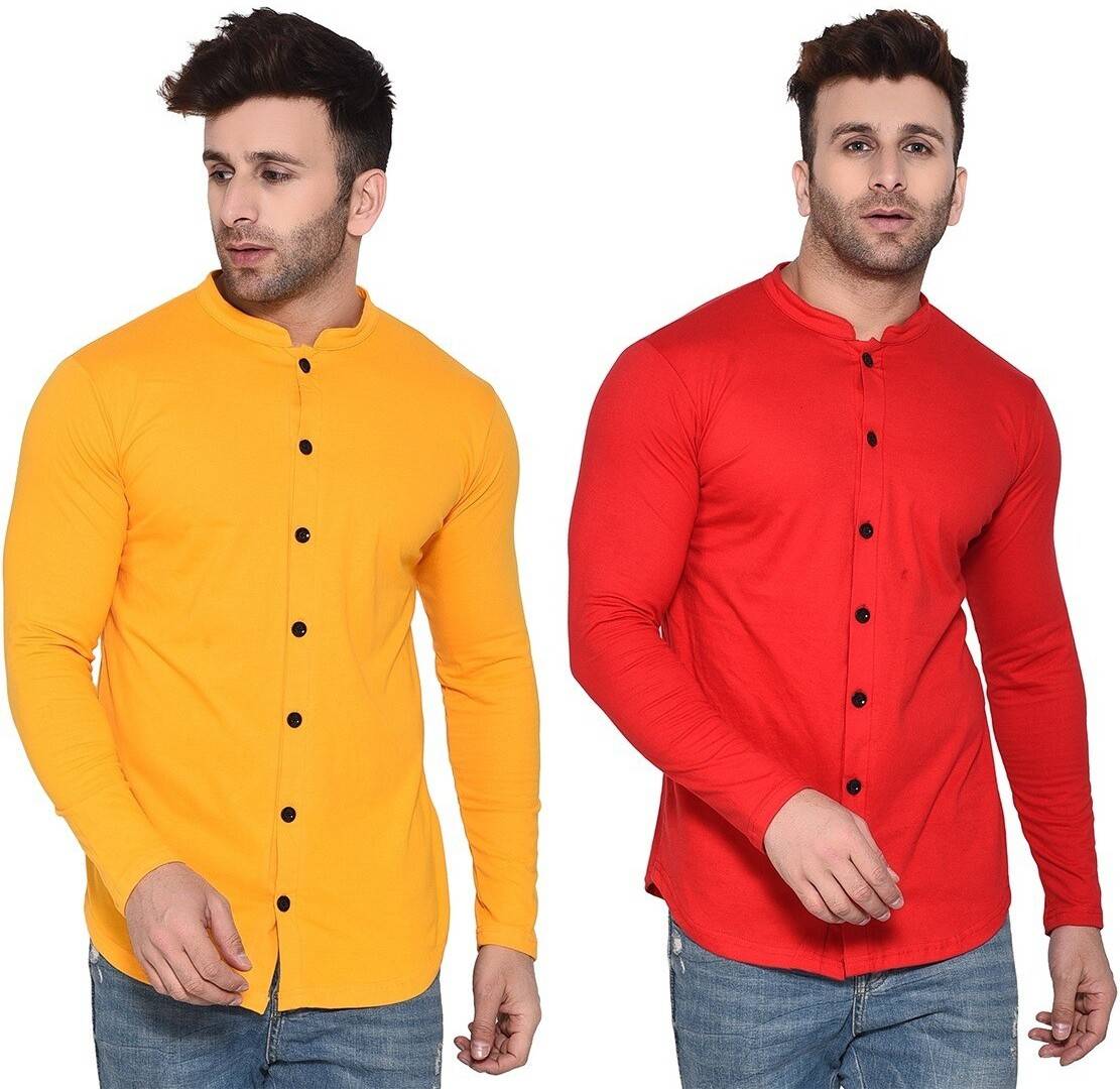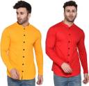 GEUM Men Regular Fit Solid Mandarin Collar Casual Shirt (Pack of 2)