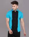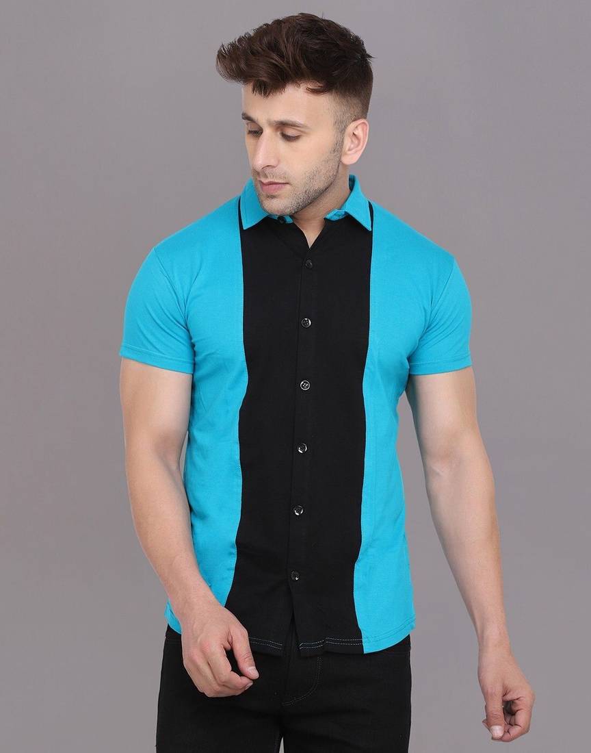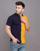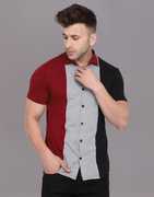 Step up your everyday style with this smartly designed slim fit shirt by Money Leaf. Tailored for comfort and a modern silhouette, this half-sleeve shirt features a unique two-tone panel design with a full button-down front, blending casual flair with a touch of sophistication. Whether you're heading to a casual outing or a laid-back office day, this versatile piece complements both denim and chinos effortlessly.