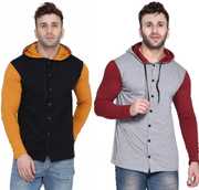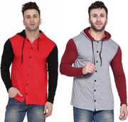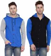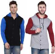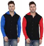 GEUM Men Regular Fit Solid Hood Collar Casual Shirt (Pack of 2)