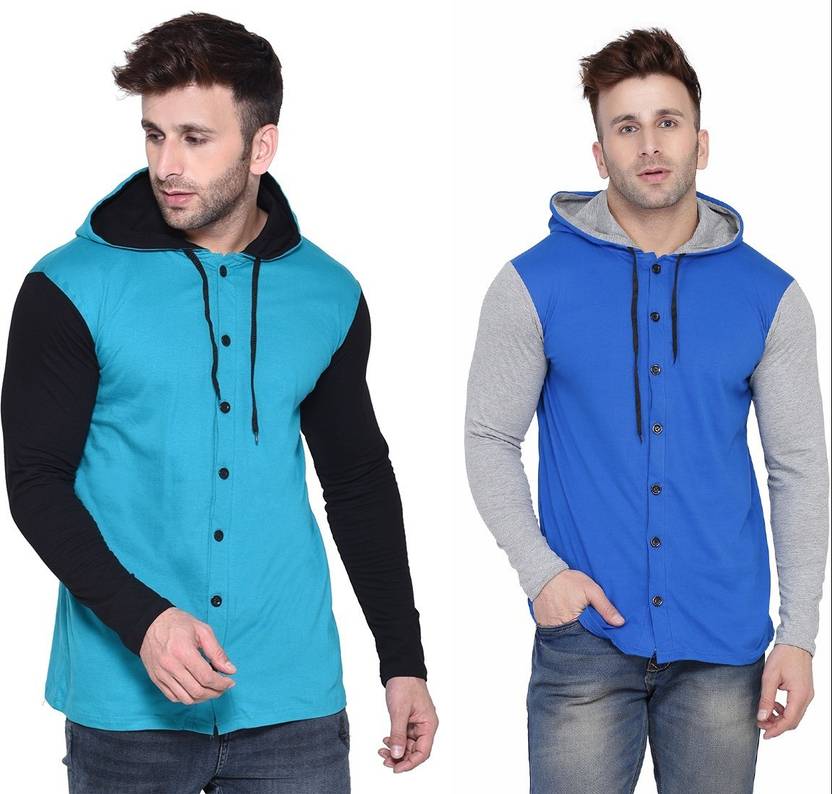 Men Regular Fit Solid Ribbed Collar Casual Shirt (Pack of 2)