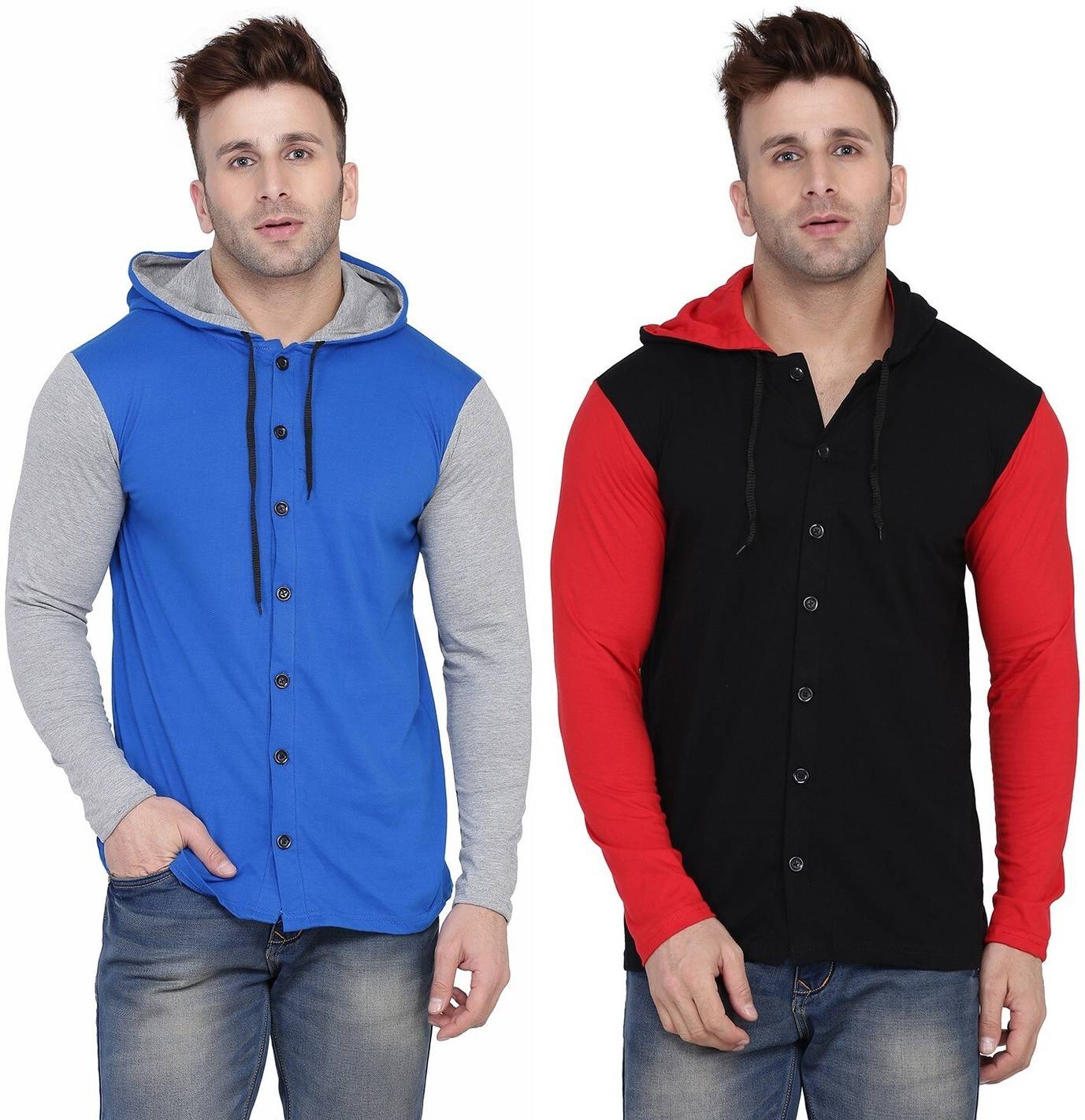 GEUM Men Regular Fit Solid Hood Collar Casual Shirt (Pack of 2)