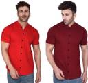 GEUM Men Regular Fit Solid Mandarin Collar Formal Shirt (Pack of 2)