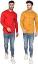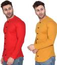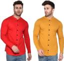 Men Regular Fit Solid Mandarin Collar Casual Shirt (Pack of 2)