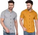 GEUM Men Regular Fit Solid Spread Collar Formal Shirt (Pack of 2)