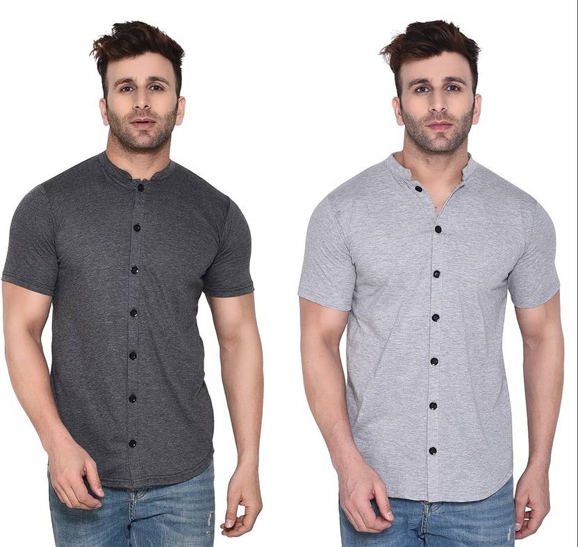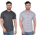 GEUM Men Solid Casual Silver, Grey Shirt (Pack of 2)