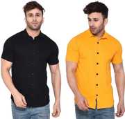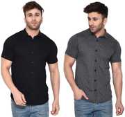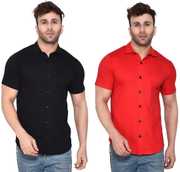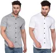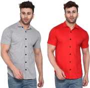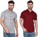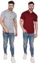 Lawful Casual Men Solid Casual Silver, Maroon Shirt (Pack of 2)