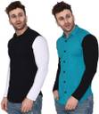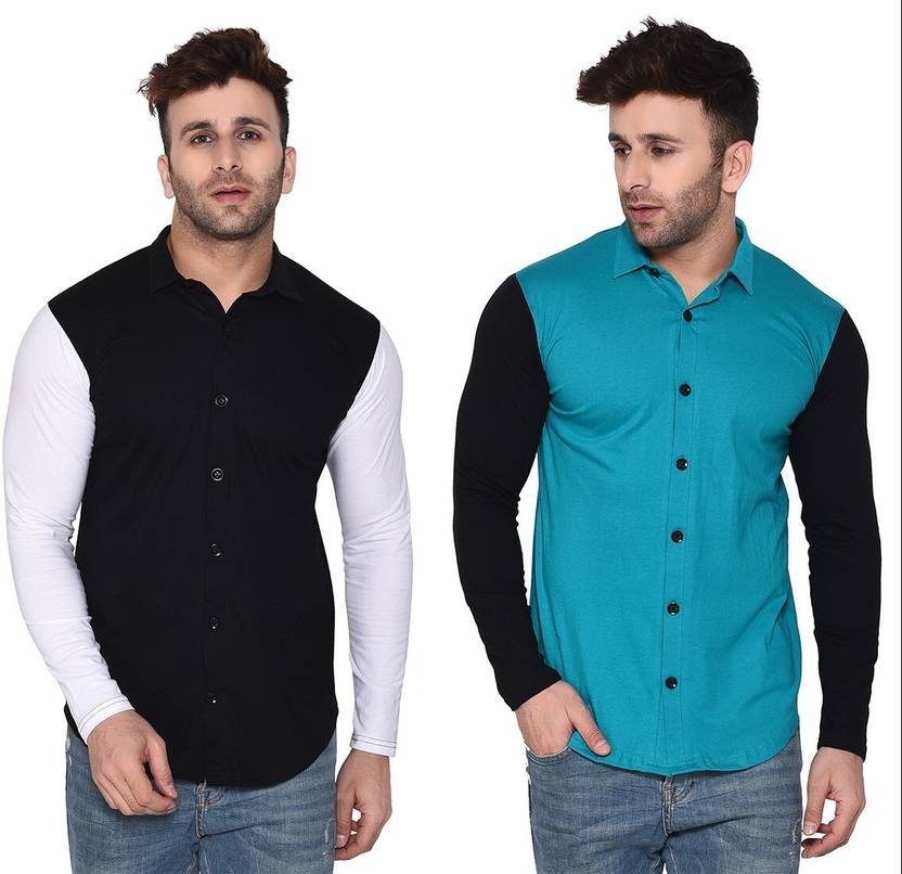 GEUM Men Solid Casual Black, Light Green Shirt (Pack of 2)