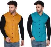 GEUM Men Regular Fit Solid Spread Collar Casual Shirt (Pack of 2)
