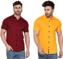 GEUM Men Regular Fit Solid Spread Collar Casual Shirt (Pack of 2)