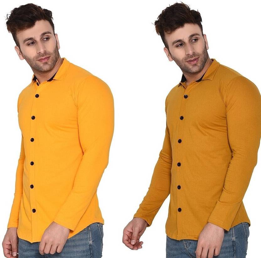 BEYOU FASHION Men Self Design Casual Yellow Shirt (Pack of 2)