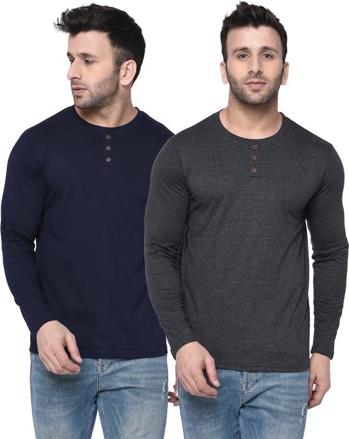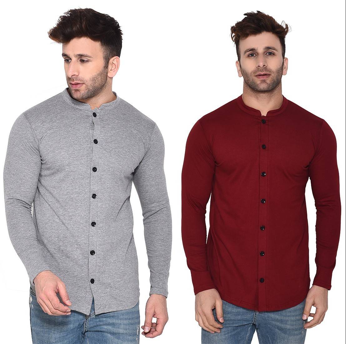 Men Regular Fit Solid Mandarin Collar Casual Shirt (Pack of 2)