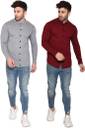 BEYOU FASHION Men Solid Casual Silver, Maroon Shirt (Pack of 2)