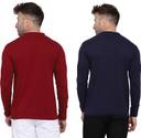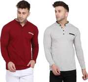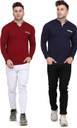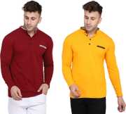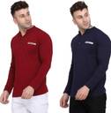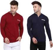 Pack of 2 Men Solid Mandarin Collar Cotton Blend Dark Blue, Maroon T-Shirt
