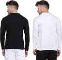 Pack of 2 Men Solid Mandarin Collar Cotton Blend White, Black T-Shirt