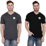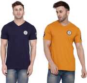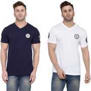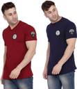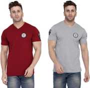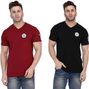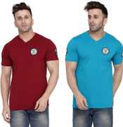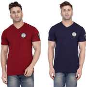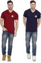 GEUM Solid Men V Neck Dark Blue, Maroon T-Shirt