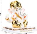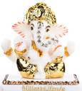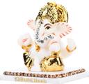 Ghar Saaz Gold Leaf Marble Dust Mukut Ganesha Idol In Matt White Finish Decorative Showpiece - 6 cm (Marble, Multicolor)