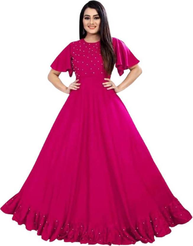 Self Design Georgette Stitched Flared/A-line Gown (Dark Blue)