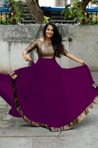 Self Design Jacquard Stitched Flared/A-line Gown (Black)