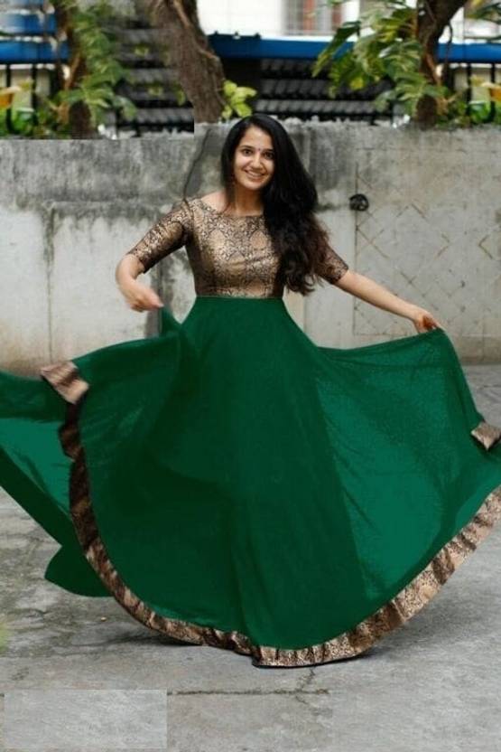 Self Design Jacquard Stitched Flared/A-line Gown (Black)