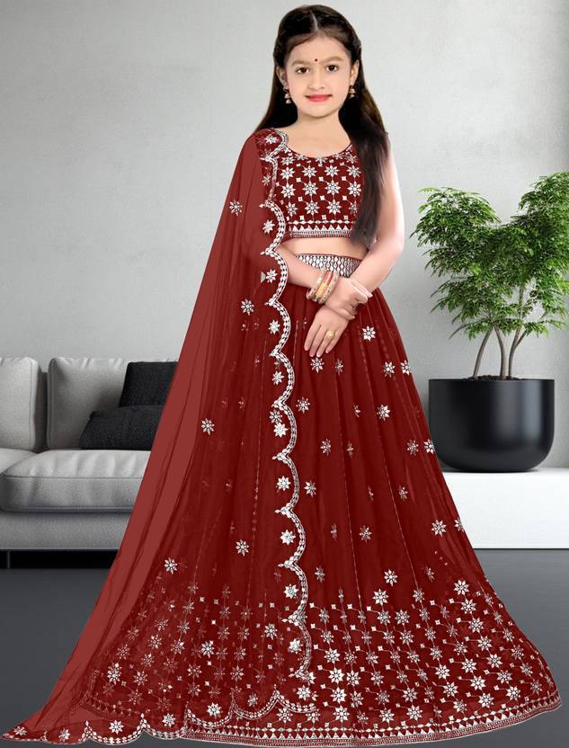 1. Breathable Net Fabric This ethnic attire is made of high-quality net fabric, and is very airy and breathable, thus reducing perspiration and keeping the form comfortable. It is lightweight and easy to handle, so, can be worn for prolonged periods of time, without causing any irritation to the skin. 2. Coordinated Ethnic Wear Set The outfit comes in a coordinated set of a lehenga, choli, and, a dupatta. The set comprises a full-length lehenga, extending from the waist to the ankles, along with an attached full-sleeve blouse piece, and a dupatta. The neat design of the pieces creates a modish and graceful look. You can accessorise the ethnic wear with a variety of styling options in accordance with your aesthetics. 3. Decorous Embroidery Pattern Intricate embroidery patterns layer the whole outfit, taking its charm to the nextlevel. The monochromatic solid colour of the whole set along with the heavy embroidery and neat designs produce a stylish and classic look, adding to it the effect of minimalism. You can accessorise the ethnic wear with a variety of styling options in accordance with your aesthetics. 4. Easy to Handle The unrestricted movement allowed by the outfit makes it ideal wear for any party or occasion. The stretchable nature of the fabric enhances flexibility and restful. It sits comfortably on the carry and does not add any bulk or weight to the clothing, thus is very easy to handle while engaging in any activity. 5. Durable and Easy to Maintain The wrinkle-resistant nature of the material makes the attire remain neat and intact for a prolonged period without the need for ironing. Fabric care of the outfit preferably requires cold water wash only, for maintaining its lustre. The fabric dries quickly when wet, hence saving up the time required in the maintenance process of the dress. 6Style Note A beautiful combination of sophistication and alluring charm, this outfit is the perfect pick. Pair it with block heels, chandbalis, and an embroidered clutch for a trendy look. 7.Semistich lehngha choli dupatta set for girls