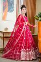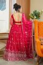 This lehenga set epitomises traditional charm with a contemporary twist. The long flowy skirt accentuates every movement with its fluidity. The matching dupatta of this set further elevates this ensemble. The beautifully designed choli complements the lehenga and dupatta nicely. Together, these elements create a harmonious blend of sophistication and allure, making it a captivating choice for any special occasion.