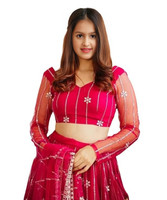 Crafted from high-quality net fabric with a lining of luxurious art silk, this set ensures both comfort and durability. The net fabric lends a lightweight and breathable feel while allowing ease of movement and ensuring comfort. The lining material of art silk adds a touch of opulence and enhances the overall appeal of this outfit.