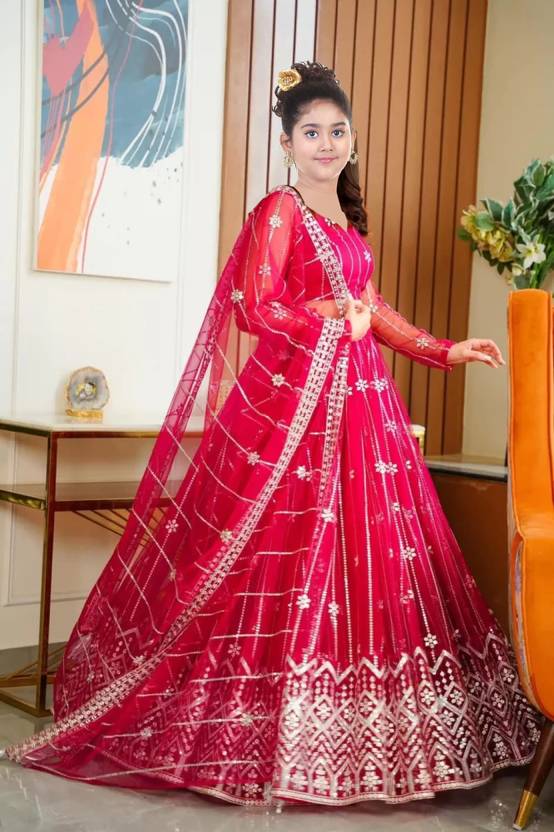 Gheludi Girls Lehenga Choli Party Wear Embroidered Lehenga, Choli and Dupatta Set (Pink, Pack of 1)