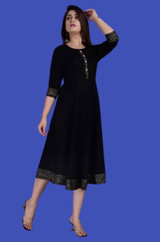 Women Printed Cotton Blend Anarkali Kurta (Black)
