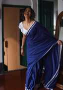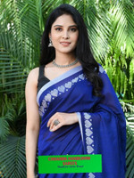 GhoshEthnic Self Design Daily Wear Handloom Cotton Blend Saree (Blue)
