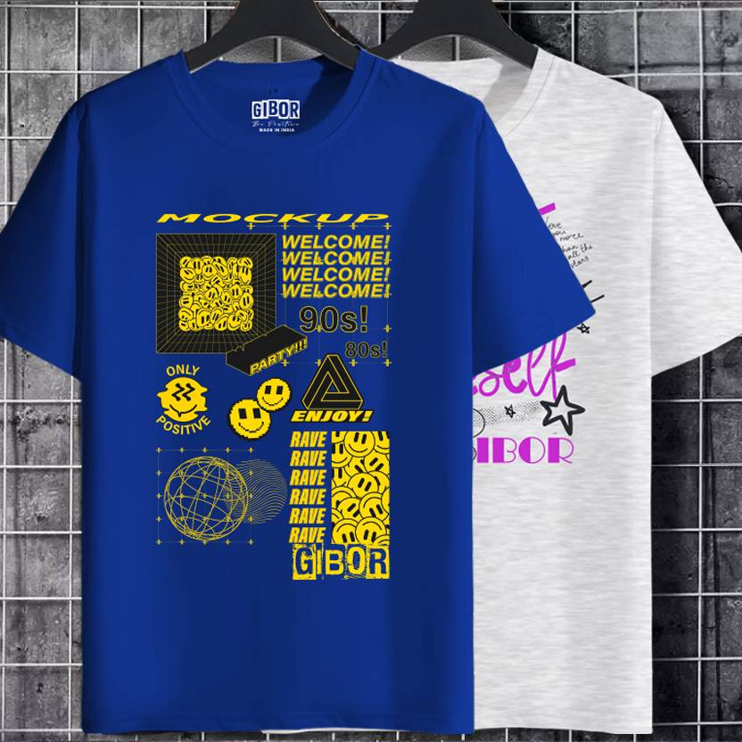 GIBOR Pack of 2 Men Round Neck Short Sleeve Printed T-Shirt