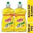 Giffy Concentrated Liquid Dish Wash Gel with Active Salt & Lemon Dish Cleaning Gel (Plain, 2 x 0.5 L)