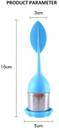 Leaf Shape Handle: 1. The tea infuser has a unique leaf-shaped handle made of soft, flexible 100% food grade silicone that is safe., 2. Fine Mesh Strainer: The tea infuser has a fine mesh strainer made of 304 grade stainless steel that is durable and resistant to rust and corrosion having 0.3 mm extra fine mesh that effectively filters out tea leaves and other particles., 3. Heat-Resistant: The tea infuser is made of heat-resistant materials that can withstand high temperatures without deforming or melting, making it safe to use in both hot and cold liquids., 4. Long Handle and Drip Tray Design: Silicone tea infuser with leaf handle protects your fingers from hot water, makes it easy to drop into your cup. Drip Tray avoid making a mess when taking out., 5. Easy to Clean: The tea infuser is easy to clean and dishwasher safe, making it convenient for everyday use., 6. Package Incudes: 1 Pcs Tea Infuser (Leaf Shape), Color: Green Blue Orange Purple (product sent as per color availability).