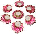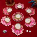 GIFT JAIPUR 7 Pink Diwali Decorative Lotus CHUDI diyas Rangoli tealight candle holder Wood (Pack of 7) Table Diya Set (Height: 1 inch)