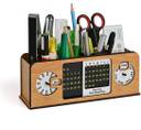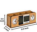 GIFT KYA DE 4 Compartments Wooden Desk Organizer With Calendar & Desk Calendar, Pen Stand, Office Accessories (Bamboo)