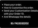 Place your order .How to customise the order .send your customisation details with your order id .And whatsapp the details .+917415332202