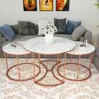 Giftoshopee Nesting Coffee Table with marble finishing top of wood, Metal Nesting Table (Finish Color - Golden, Set of - 3, Pre-assembled)
