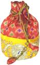 This gorgeous designer potli bag has intricate embroidery and stonework on a base of silk. A truly stunning accessory that will lift your ensemble to another level. The potli is spacious and big enough to accomodate a cell phone, wallet and much more. Size: Height: 8.5 in; Width: 8 in