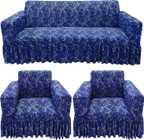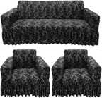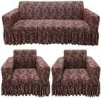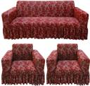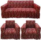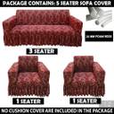 Gifts Island Polyester 3+1+1 Seater Sofa Abstract Cover (Pack of 3 Maroon Marble Non-Slip Stretchable Elastic 360° Frill Sofa Cover (3+1+1 Seater))
