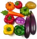 COMPLETE SET: 12-piece artificial vegetable set includes eggplant, corn, pumpkin, potato, carrot, onion, cucumber, garlic, and red chilli for realistic display