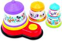Fun-filled mickey musical stacking toy which can be built up into a colorful tower. Winding up the musical movement and releasing it turns the tower in time to the gentle mickey music. The stacking sections also can be nested into each other.