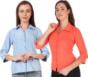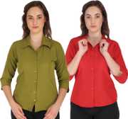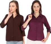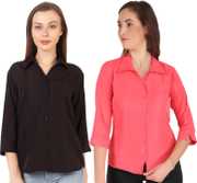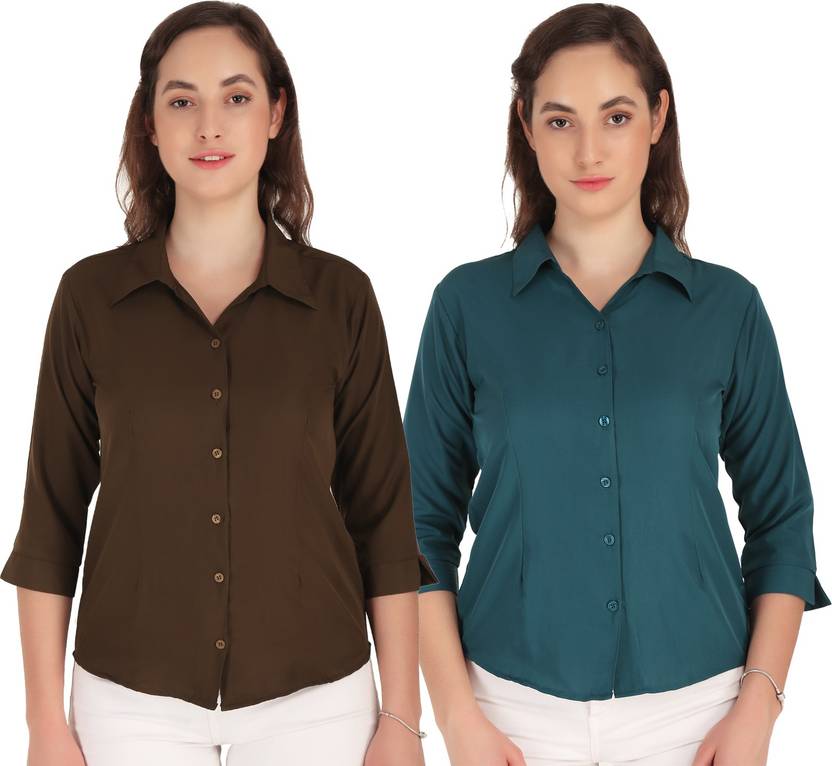 Giggles Women Solid Casual Brown, Black Shirt (Pack of 2)