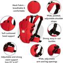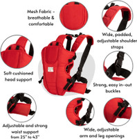 • Versatile 3-in-1 Carrying Positions: Adapt the carrier to your baby's needs, providing comfort and flexibility as they grow., Strength, Adjustability, and Comfort: Engineered for durability and easy customization, ensuring both parent and baby experience maximum comfort during every use., Soft Cushioned Detachable Head Support: Enhance your baby's comfort with a gentle, detachable head support, promoting a cozy and secure ride., Breathable Mesh Fabric and Lightweight Design: Keep your baby cool with breathable materials while enjoying the convenience of a lightweight carrier for easy, hassle-free outings., Wide Padded Adjustable Shoulder Straps: Distribute weight evenly for parent comfort, reducing strain during extended wear, and allowing for a personalized fit., Strong Buckles: Secure and reliable buckles ensure the carrier stays safely fastened, providing peace of mind during your adventures.
