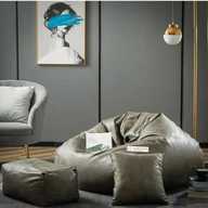 GIGLICK 4XL Premium Imported Soft Vegan Leather Bean Bag with Rectangular Footrest & Cushion Bean Bag Chair With Bean Filling (Yellow)