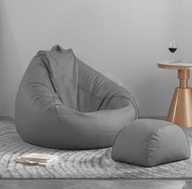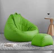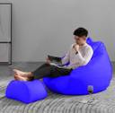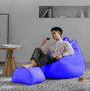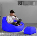 GIGLICK XXXL Faux Leather Bean Bag & Curve Footrest Filled with Beans Bean Bag Chair With Bean Filling (Blue)