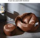 GIGLICK XXXL Faux Leather Leatherette Bean Bag with Footrest and Cushion Filled with Beans Bean Bag Chair With Bean Filling (Tan)