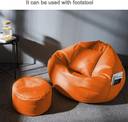GIGLICK XXXL Faux Leather Leatherette Bean Bag with Footrest and Cushion Filled with Beans Bean Bag Chair With Bean Filling (Orange)