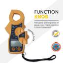 TROUBLESHOOTING? This Digital Clamp Multimeter is designed to safely and accurately troubleshoot a variety of automotive and electrical mechanical problems of cars HVAC household appliances safely, MULTIPLE FUNCTIONS? This Digital Clamp Multimeter supports voltage testing function for both AC and DC voltage and low battery power indicator function. It also supports testing function for on-off buzzers and diodes., QUICK CHECK & ACCURATE RESULT? The Clamp Amp Meter Features large digital display for battery quick check and accurate results, counts accurately measures AC DC current to 1000A, SAFE TO USE? Overload protection on all ranges. You can use this Clamp Multimeter to do unidentified wire testing, non-contact amperemeter test for amperage, avoid electric shock without touching any wires., EASY TO READ? This Digital Clamp Multimeter adopts with large digital display screen. Measuring instrument with function of data hold, which makes it easier to read data, the LCD max reading is 1999.