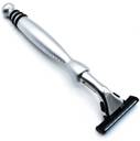 The razor's twin blades are spring-mounted to adjust to the contours of the face, ensuring optimal contact with the skin for a smooth and even shave. Additionally, the blades are equipped with a Lubrastrip that provides lubrication to enhance glide and protect against irritation, allowing the razor to effortlessly glide over the skin without tugging or pulling.